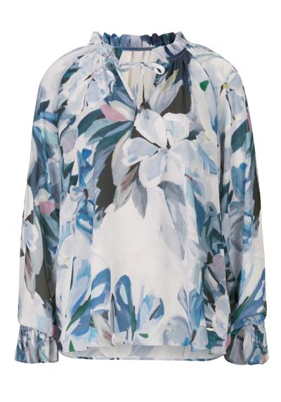 Locker und casual präsentiert sich diese Bluse von DreiMaster Vintage. Gefertigt aus einem fließenden Material zeigt der Allover-Print ein florales Muster, was der Bluse einen Hauch von Romantik verleiht. Die legere Form wird durch die weiten Ärmel begleitet, so kann das Modell auch entspannt über einer Hose getragen werden. Der kleine Stehkragen mit Bindeband sorgt für den optischen Feinschliff. Bluse mit floralem Print Aus fließendem Material Lockere Passform Weite Ärmel mit Manschette Stehkragen mit Bindeband Obermaterial 100% Polyester Care information: schonwaschgang 30°c; nicht bügeln; tumblertrocknung nicht möglich; keine chemische reinigung möglich; nicht bleichen
