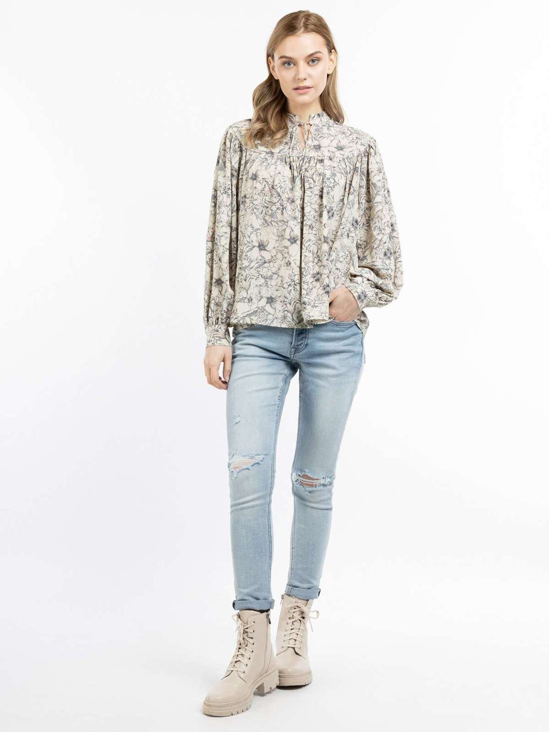 Эта блузка от DreiMaster Vintage отличается свободой и непринуждённостью. Выполненная из струящегося материала блузка украшена цветочным принтом по всей поверхности, который придает блузке нотку романтики. Повседневный крой дополнен широкими рукавами, поэтому модель можно носить и поверх брюк. Небольшой воротник-стойка с галстуком завершает визуальный штрих. Блузка с цветочным принтом Из струящегося материала Свободный крой Широкие рукава с манжетами Воротник-стойка с галстуком Внешний материал 100% полиэстер Информация по уходу: деликатный цикл 30°C; Не гладить; сушка в барабане невозможна; химчистка невозможна; Не отбеливать